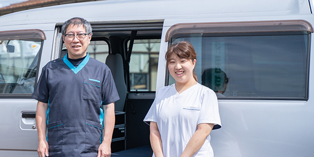院長自らがご自宅や施設へ訪問し、診療を行います。院内と同等の治療ができるよう、専用の治療器具一式を完備しており、訪問先でもほぼ通常通りの治療が可能です。安心してご利用いただけます。